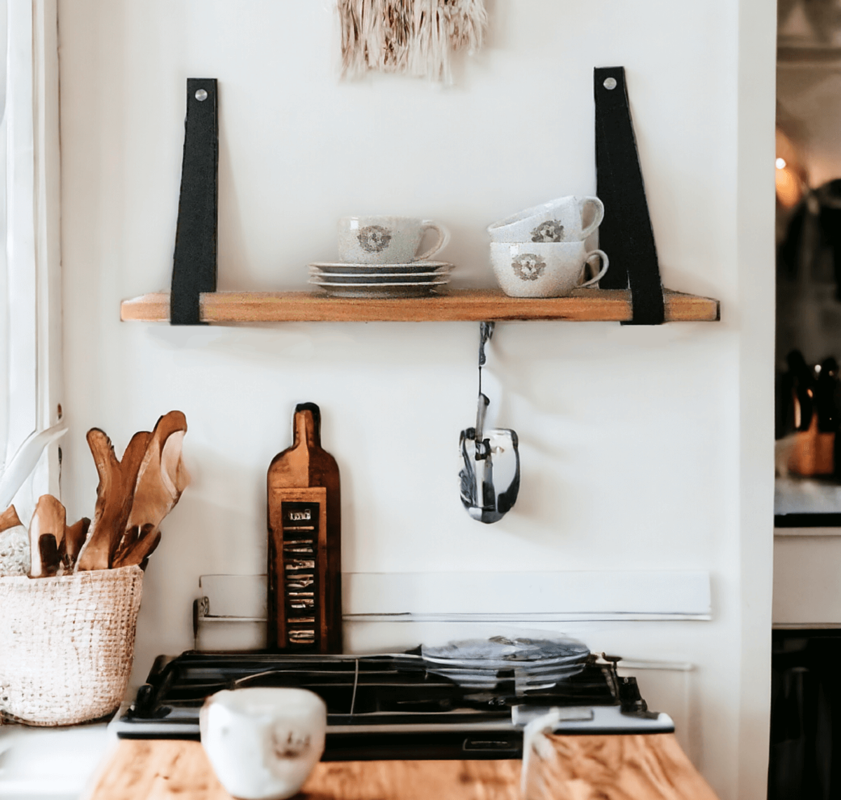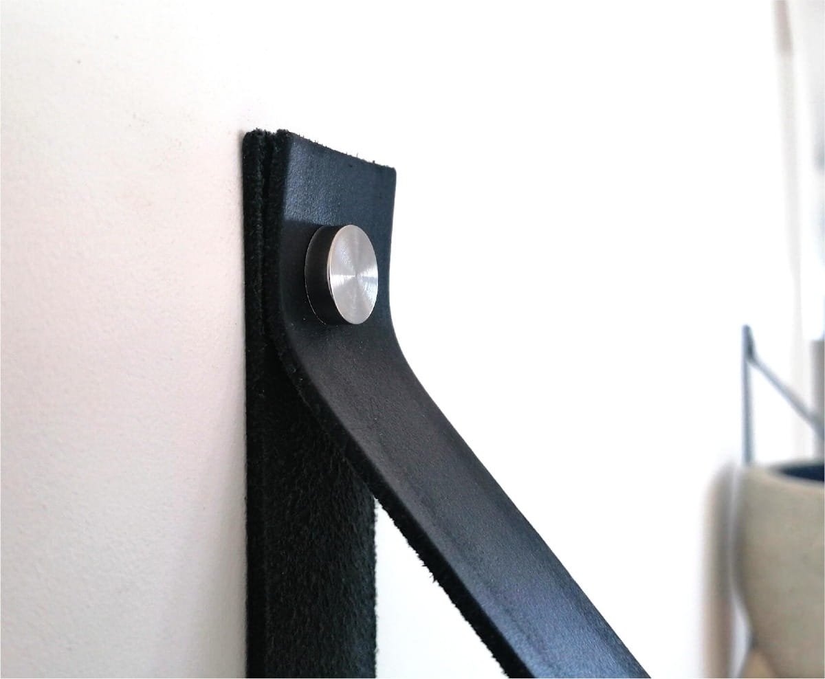 Eleganckie Skórzane Paski: Solidne paski wykonane z naturalnej skóry w kolorze brązowym lub czarnym dodają półce nowoczesnego wyglądu i umożliwiają łatwy montaż na ścianie.