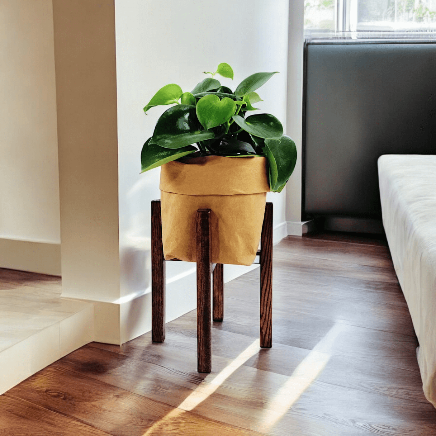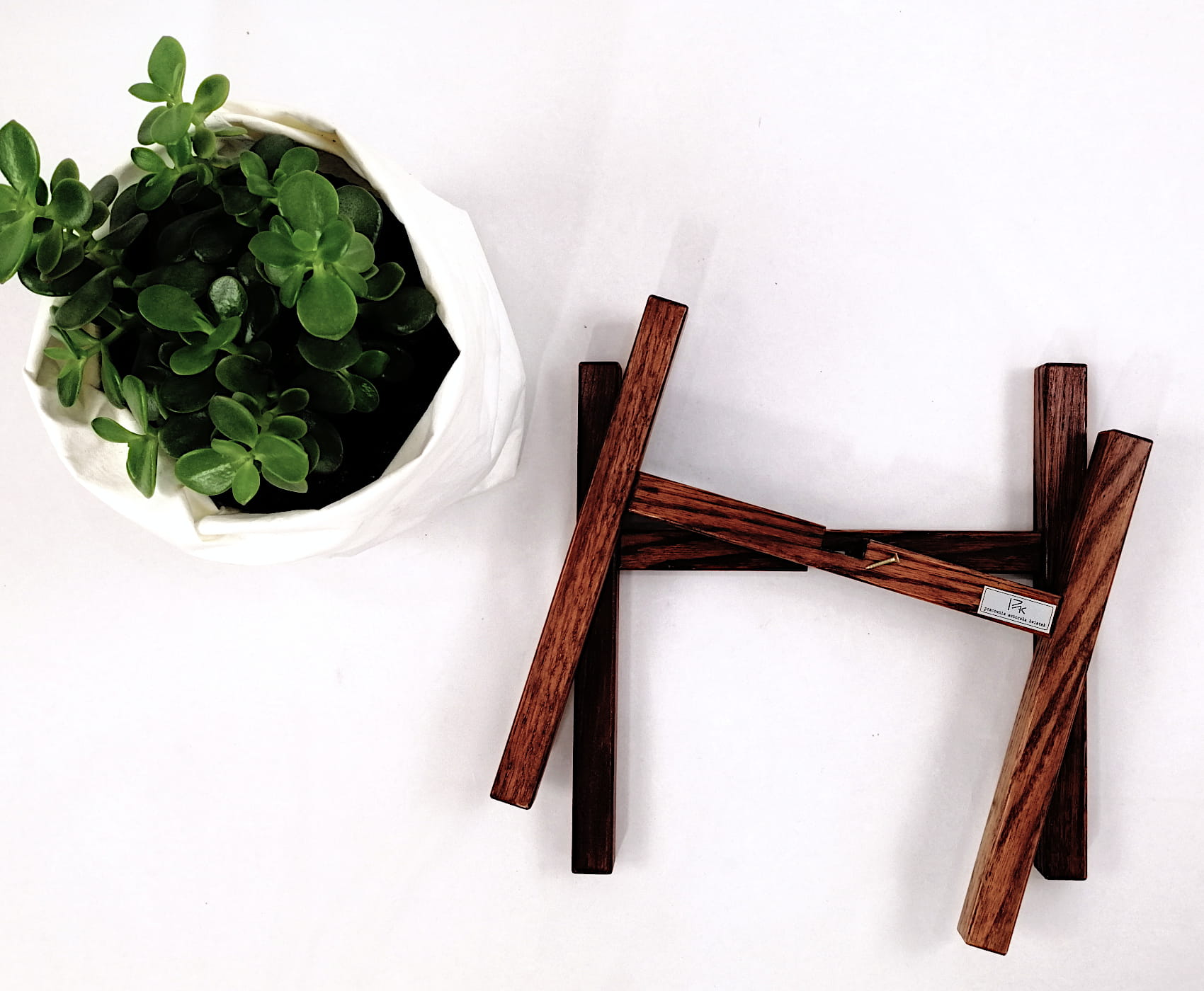 Stojak pod doniczkę w kolorze brązu, doskonale sprawdzi się w przestrzeniach nowoczesnych. Dzięki niepowtarzalnemu designowi, produkt świetnie komponuje się we wnętrzach w stylu minimalistycznym, loftowym, glamour czy boho. Całość została stworzona w naszej Pracowni Autorskiej Kwiatek z najwyższej jakości, naturalnego, litego drewna dębowego. Każdy element ręcznie szlifujemy, a następnie wykańczamy specjalnymi środkami w formie wosku oraz oleju. Każdy z nich jest również opatrzony logiem naszej firmy. Dzięki użyciu ekologicznych preparatów oraz dbałości o najdrobniejszy szczegół, nasze stojaki zachwycają doskonałym wyglądem oraz wysoką jakością.